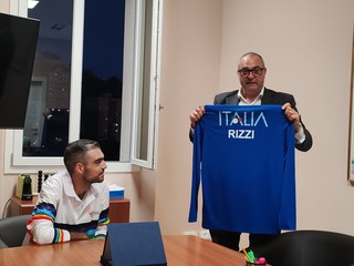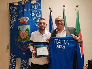 Rizzi, a sua volta, ha regalato la maglia dell'Italia con il suo nome al sindaco Perri che ha promesso di incorniciarla e appenderla in Comune. "E' una bella e forte emozione ricevere questa targa" - commenta Diego Rizzi - "Ha un valore importante per me perché essere considerato dalla propria città fa molto piacere".