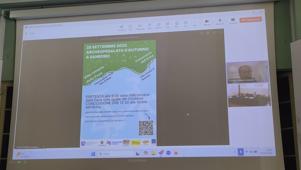 “Il Comune di Sanremo aderisce con piacere alle Giornate Europee del Patrimonio – dichiarano il vicesindaco Fulvio Fellegara e l’assessore alla cultura Enza Dedali – perché significa coinvolgere la cittadinanza in un dialogo sempre più vivo con il nostro patrimonio culturale per raccontarlo, renderlo fruibile e trasmetterlo alle giovani generazioni. Grazie agli uffici per il lavoro svolto e alla Soprintendenza Archeologia Belle Arti Paesaggio per aver proposto un’iniziativa così affascinante quale l’archeopedalata prevista domenica 28 settembre”.
