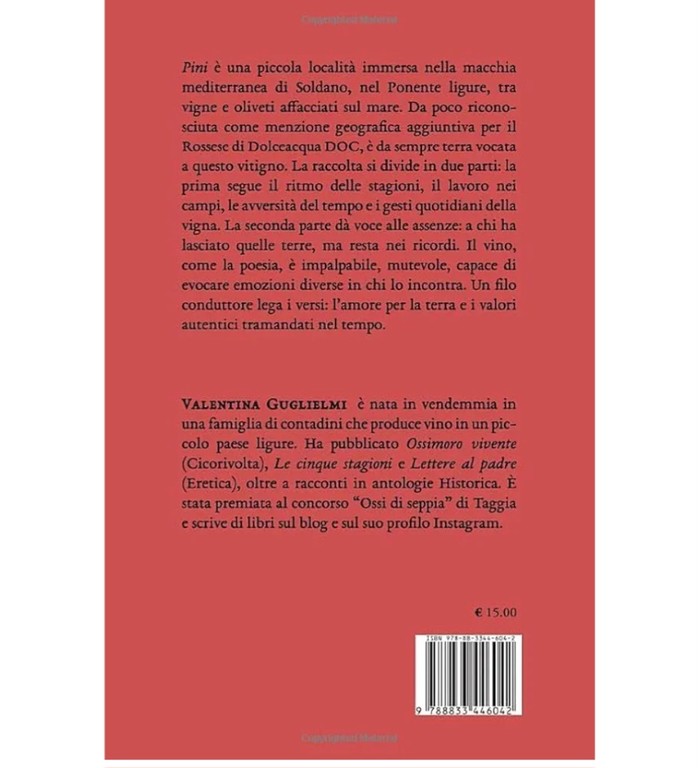 La presentazione di Pini rappresenta dunque non solo un momento di incontro con la poesia di Valentina Guglielmi, ma anche un tassello importante nel mosaico culturale che Dolceacqua sta costruendo attorno alla parola poetica, al vino e alla bellezza del territorio. Un appuntamento da non perdere per chi ama la poesia che nasce dalla terra e parla al cuore.