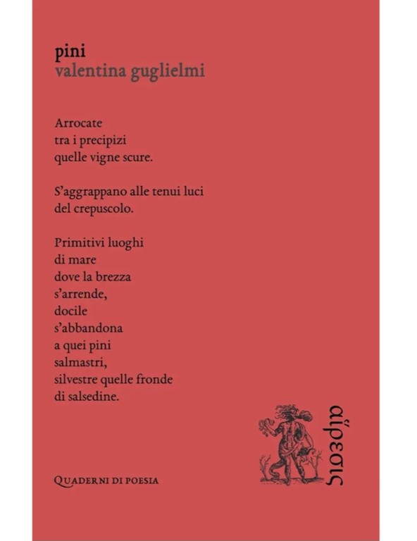 Domenica 28 settembre alle ore 18, presso il suggestivo locale Vino & Basilico, nel cuore di Dolceacqua, si terrà la presentazione della silloge poetica Pini di Valentina Guglielmi.
