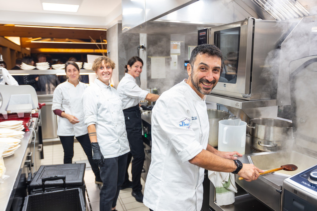 E poi, come da tradizione, le Stelle. Quelle Michelin, brillanti al fianco del Bitto. Gli chef di Euro-Toques Italia hanno dato vita a piatti che hanno saputo reinventare il formaggio senza mai tradirne l’essenza. Insieme a loro, il presidente dell’associazione, Enrico Derflingher, grandi nomi della cucina internazionale e giovani talenti emergenti. A fare gli onori di casa, ancora una volta, Gianni Tarabini – segretario generale di Euro-Toques ed executive chef de La Fiorida – custode di una Stella Michelin dal 2013 e di una Stella Verde dal 2022, affiancato dalla sua brigata.
