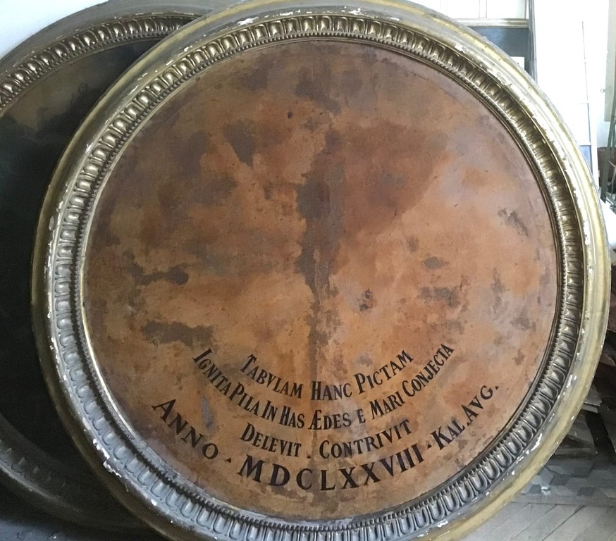 Il reperto, rinvenuto di recente durante i lavori di restauro dell’ultimo piano del palazzo dai fratelli Tommaso e Corrado Mocenigo Soranzo, discendenti della storica famiglia Borea, è con ogni probabilità un ricordo diretto del bombardamento di Sanremo da parte della flotta francese di Luigi XIV, avvenuto nell’agosto del 1678.