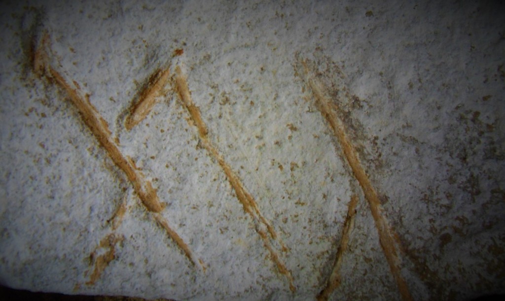 Accanto a questa roccia, un’altra testimonianza si nasconde tra le pareti di un antico casum, dove una pietra incastonata mostra tre incisioni antropomorfe realizzate a graffio ripetuto. Queste figure, stilizzate e enigmatiche, richiamano i celebri ritrovamenti della Valle delle Meraviglie, suggerendo un legame culturale e simbolico tra le popolazioni che abitavano queste terre. Le incisioni, forse rappresentazioni di divinità, antenati o spiriti protettori, parlano di un linguaggio visivo che attraversa millenni, lasciando tracce indelebili nella pietra.
