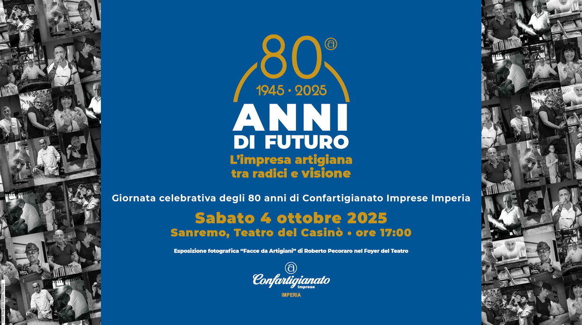 Un traguardo importante, quello che Confartigianato Imperia si prepara a celebrare: sabato 4 ottobre, alle ore 17, presso il Teatro del Casinò di Sanremo si terrà la cerimonia ufficiale per gli 80 anni dell’associazione, punto di riferimento per generazioni di artigiani e imprese del territorio.
