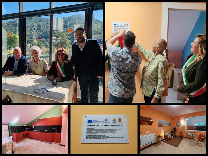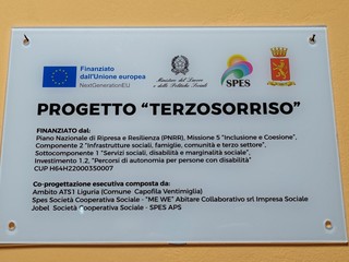 Percorsi di autonomia per persone con disabilità. Ventimiglia inaugura il 'Terzo sorriso' a Varase alla presenza di autorità civili, militari, della Spes e di Asl1. Un progetto sostenuto dal comune di Ventimiglia, direzione dei Servizi Socio Sanitari, in collaborazione con l'associazione Spes, Cooperativa Sociale Spes, Cooperativa Jobel, Impresa Sociale “ME We” Abitare Collaborativo con il supporto del servizio Disabilità Adulta di Asl1 Imperiese, che prevede un appartamento di sei posti con cucina, bagni, salotto e sala ricreativa realizzato nell’ambito del finanziamento Pnrr della Missione 5 “Inclusione e coesione” Componente 2 “Infrastrutture sociali, famiglie, comunità e terzo settore”, Sottocomponente 1 “Servizi sociali, disabilità e marginalità sociale” pari a 650.800,00 euro.