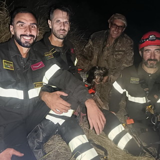 Molini di Triora: intervento dei Vigili del Fuoco che hanno salvato un setter caduto in una buca, il ringraziamento dei proprietari