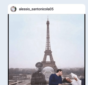 Il Fuhrer, in un fotomontaggio pubblicato, appare anche sulla Torre Eiffel -dove non riuscì mai a salire- in una immagine con una coppia di fidanzati che gli stanno accanto. E pure qui il tributo al capo del nazismo non manca: "L'anima del dittatore accanto ai due innamorati", si legge nella dida. Quanto basta per porre dubbi sulla reale vicinanza al popolo ebraico, sbandierata oggi da Santonicola il quale all'AdnKronos conferma però l'impegno per Israele: "Basta con le fake news sullo stato sionista", dice spiegando la sua iniziativa, che per ora "ha messo insieme una trentina di persone, animate dall'obiettivo di dire la verità a difesa di Israele, su cui circolano troppe falsità".