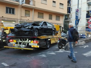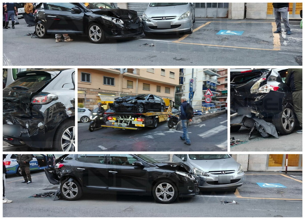 Sanremo: perde il controllo dell'auto in via Galileo Galilei, ne distrugge otto parcheggiate e fugge via (Foto)