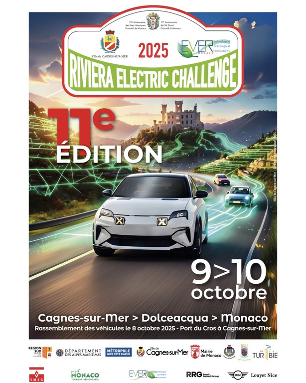 Veicoli elettrici e mobilità sostenibile. Dal 9 al 10 ottobre andrà in scena la undicesima edizione della Riviera Electric Challenge che farà tappa a Cagnes -sur-Mer, Dolceacqua e Monaco.