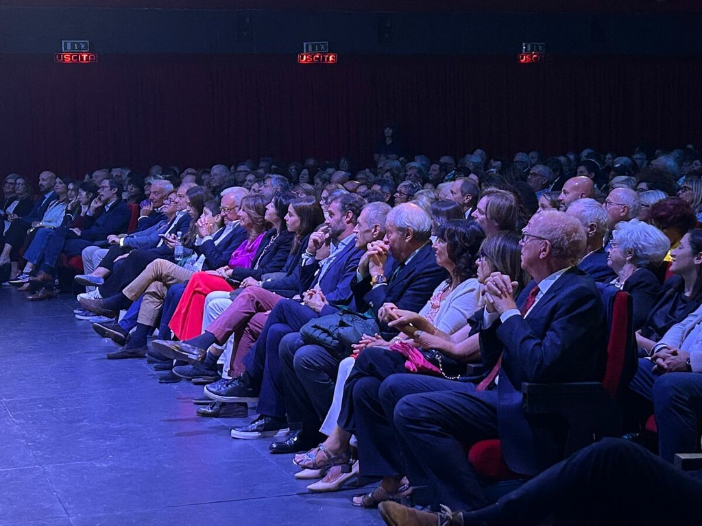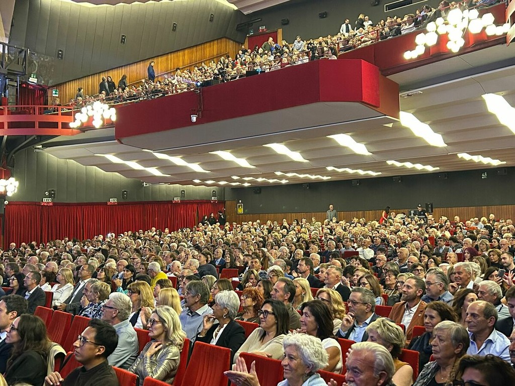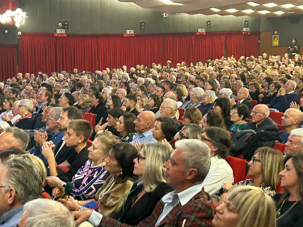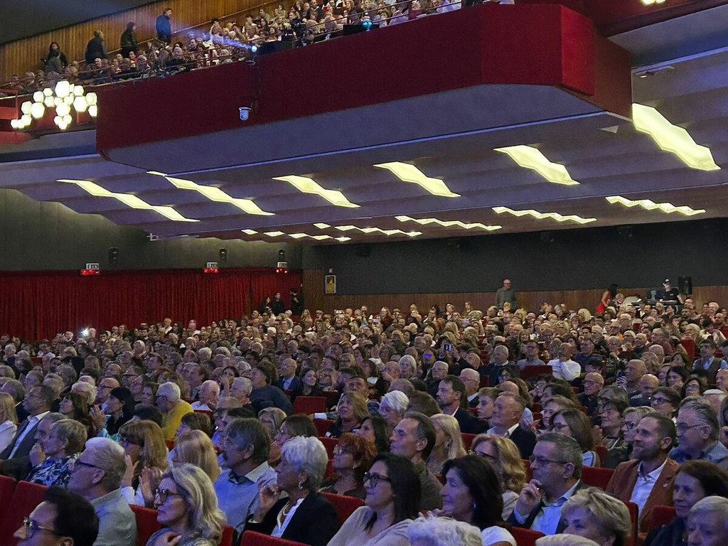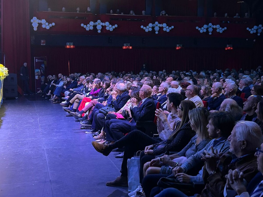 Il titolo della serata, “Venti di musica e allegria”, racchiudeva già il senso profondo di un evento che ha riempito la sala e il cuore di chi c’era. Per tre ore, il pubblico ha dimenticato i timori e le tensioni del presente e si è lasciato trascinare in un viaggio fatto di risate, emozioni e musica. Ha cantato, e si è commosso, insieme a Piero Cassano (componente dei Matia Bazar) lo storico brano “Stasera che sera”, si è divertito con l’ironia di Enzo Paci, si è sorpreso ad ascoltare l’economista Carlo Cottarelli intonare “Il ragazzo della via Gluck”. Un intreccio insolito e perfetto di leggerezza e profondità, di gioco e riflessione.