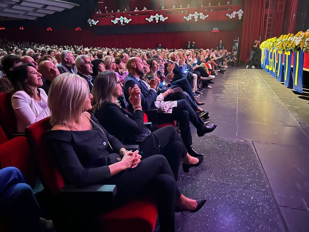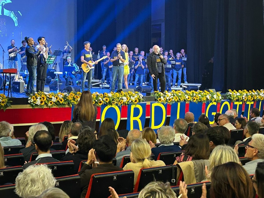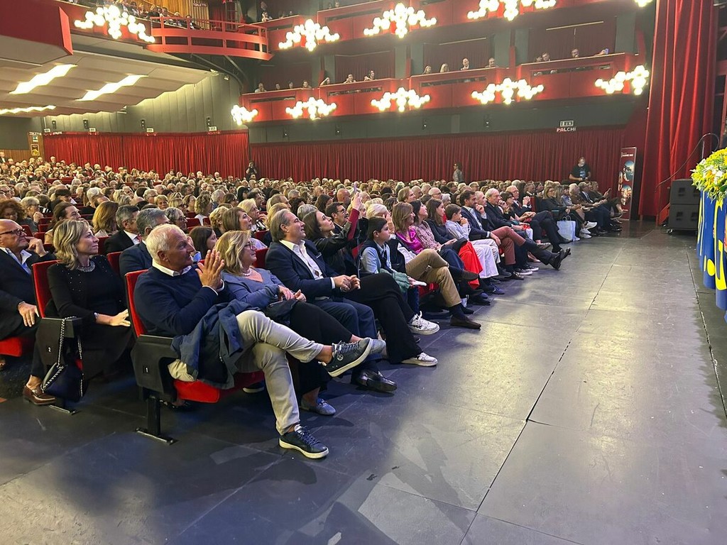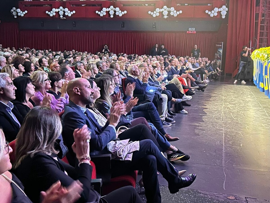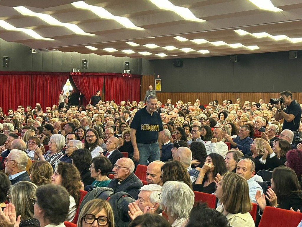 Il titolo della serata, “Venti di musica e allegria”, racchiudeva già il senso profondo di un evento che ha riempito la sala e il cuore di chi c’era. Per tre ore, il pubblico ha dimenticato i timori e le tensioni del presente e si è lasciato trascinare in un viaggio fatto di risate, emozioni e musica. Ha cantato, e si è commosso, insieme a Piero Cassano (componente dei Matia Bazar) lo storico brano “Stasera che sera”, si è divertito con l’ironia di Enzo Paci, si è sorpreso ad ascoltare l’economista Carlo Cottarelli intonare “Il ragazzo della via Gluck”. Un intreccio insolito e perfetto di leggerezza e profondità, di gioco e riflessione.