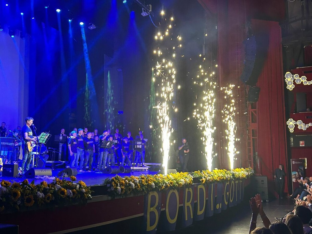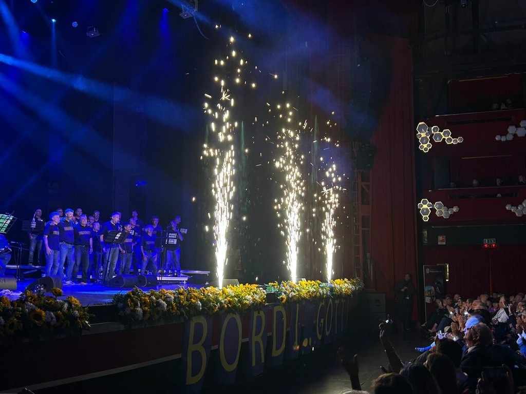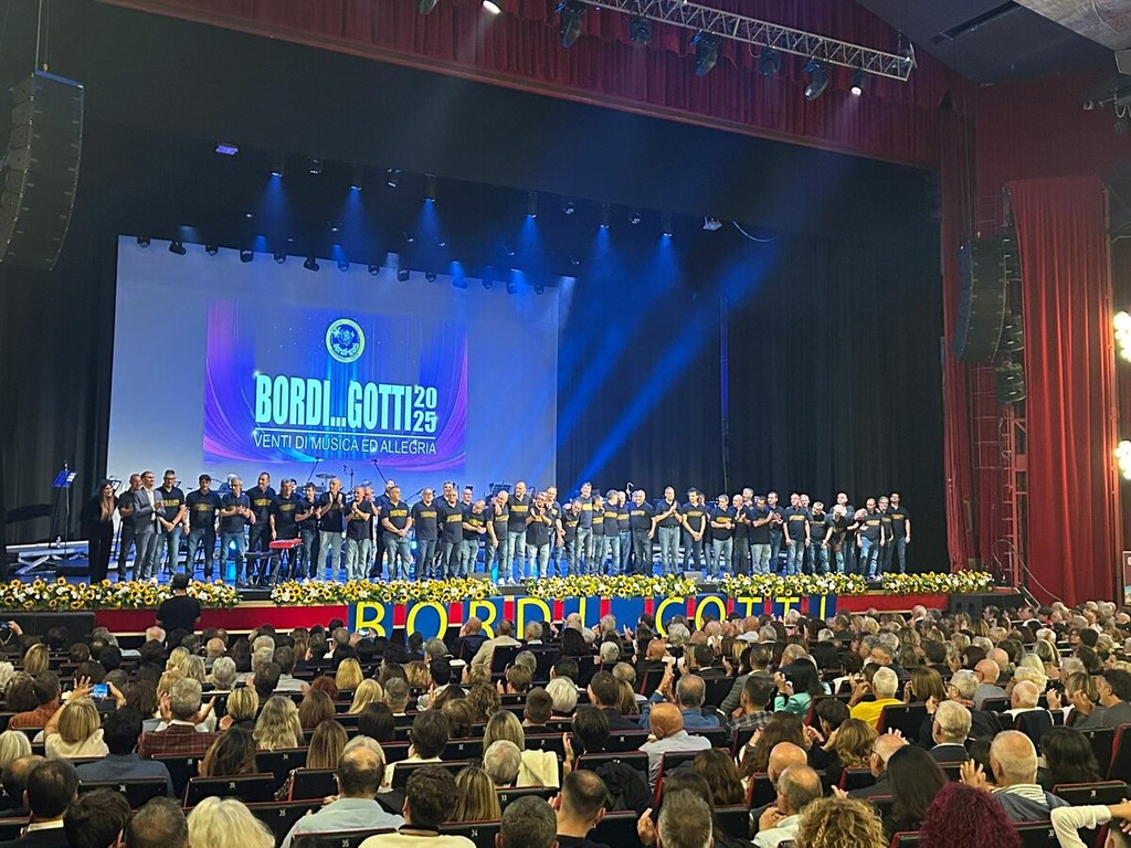 “Ogni volta è una sfida diversa – hanno raccontato i Bordigotti – ma la nostra filosofia è sempre la stessa: far divertire, cantare e sentire parte di una comunità chi siede in sala”. Ed è stato così anche ieri, tra i cori, i ballerini professionisti, gli undici musicisti e le 41 voci che hanno reso unica la serata.