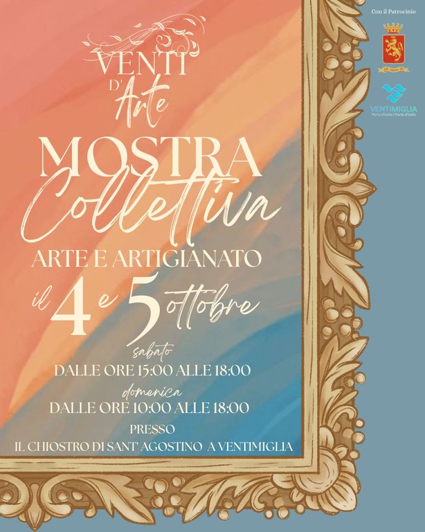 Ventimiglia inaugura la mostra collettiva dell’associazione Venti d'Arte allestita nel chiostro di Sant'Agostino alla presenza di artisti, associazioni e cittadini.