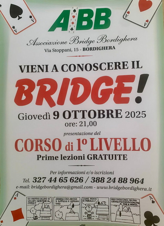 Ulteriori informazioni e i contatti sono disponibili sul sito www.bridgebordighera.it