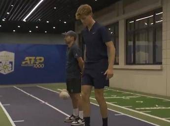 Jannik Sinner fuoriclasse anche con il pallone tra i piedi. Il numero 2 del ranking Atp è stato 'pizzicato' dalle telecamere delle tv prima del match contro l'olandese Tallon Griekspoor a Shanghai, in una fase molto rilassata del riscaldamento. Nel filmato, diventato già virale sui social, Jannik ruba una pallina a coach Simone Vagnozzi e inizia a palleggiare. Ovviamente, senza mai far cadere la palla a terra. La curiosità? Vagnozzi quasi non si accorge del momento e resta fisso con lo sguardo in avanti, probabilmente intento a guardare il match tra Novak Djokovic e Yannick Hanfmann, scesi in campo prima dell'azzurro.