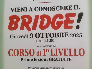 Con l'arrivo del mese di ottobre riprende l'attività didattica dell' Associazione Bridge Bordighera. Giovedì 9 ottobre alle ore 21.00, presso la sede di Via Stoppani 15 a Bordighera, all'interno della Palazzina del Tennis, prenderà il via il corso per principianti.