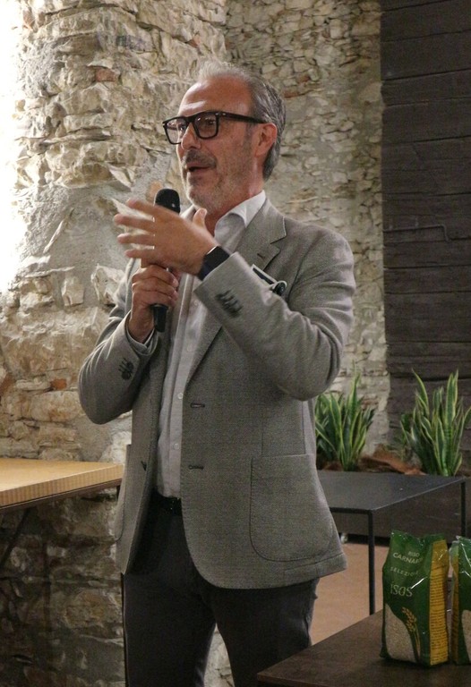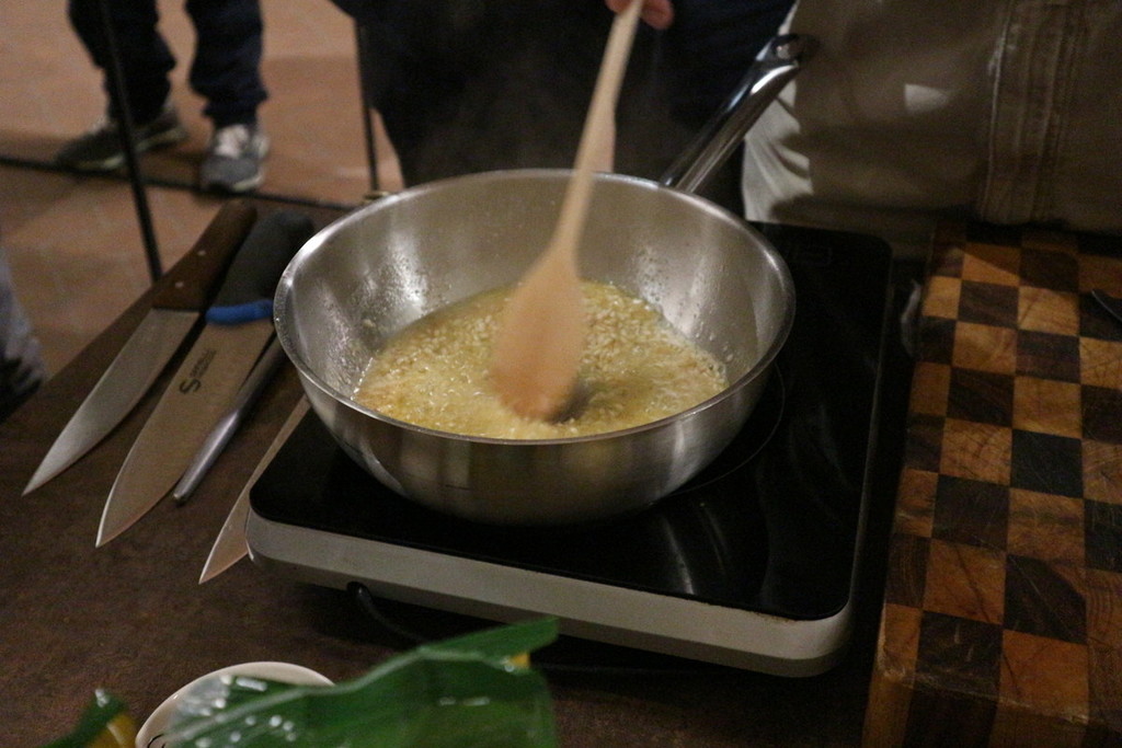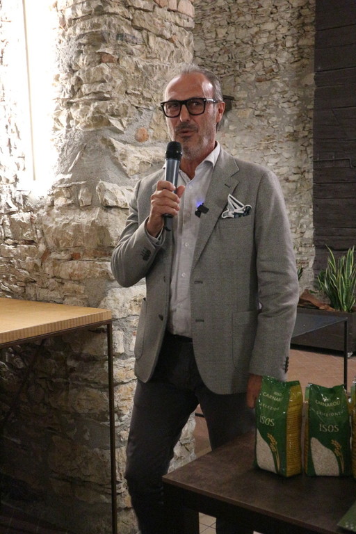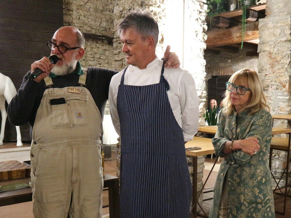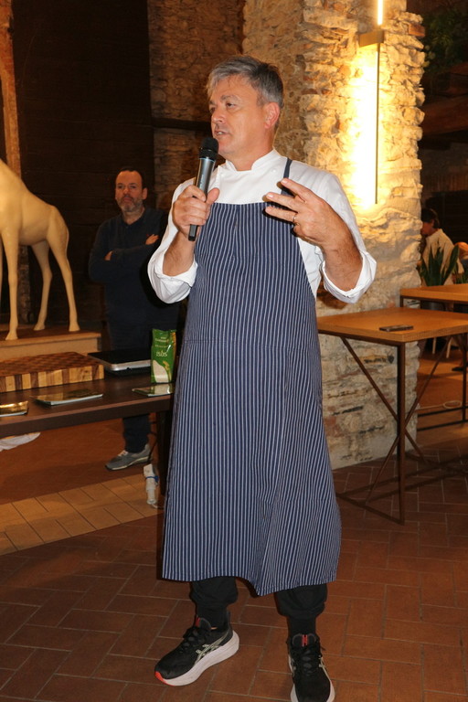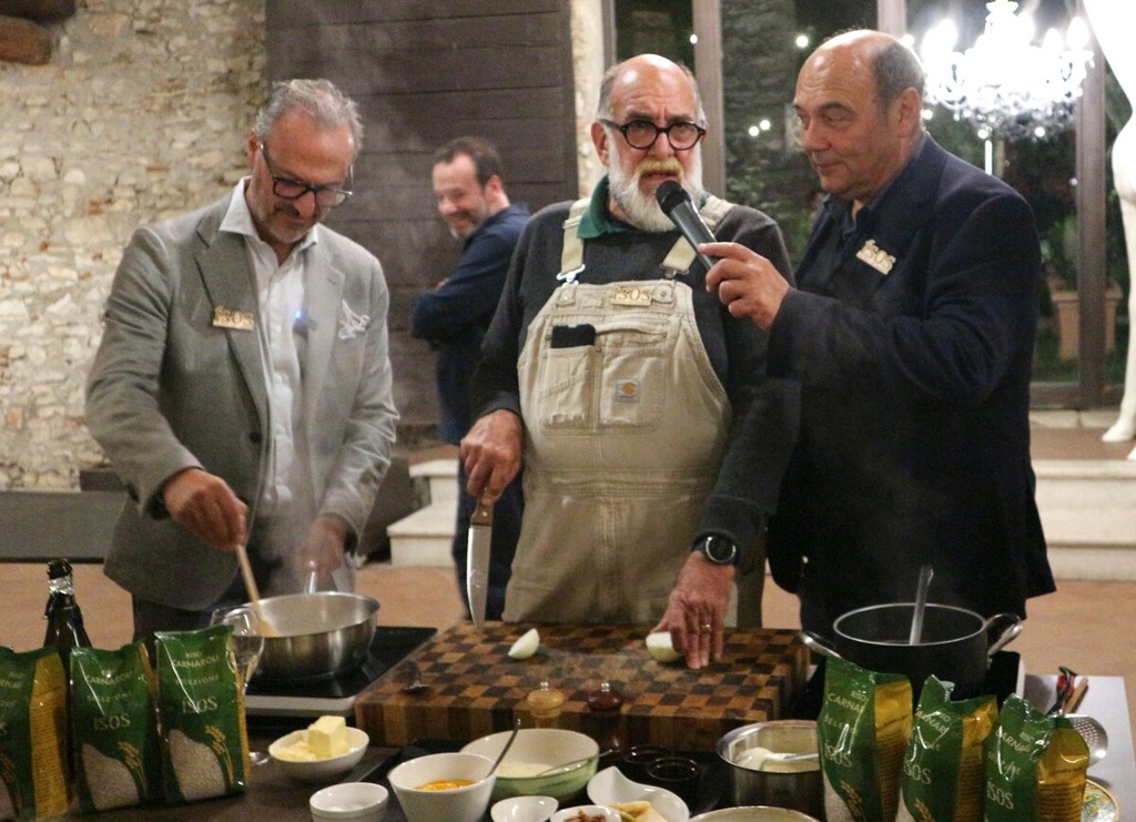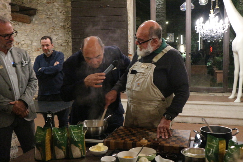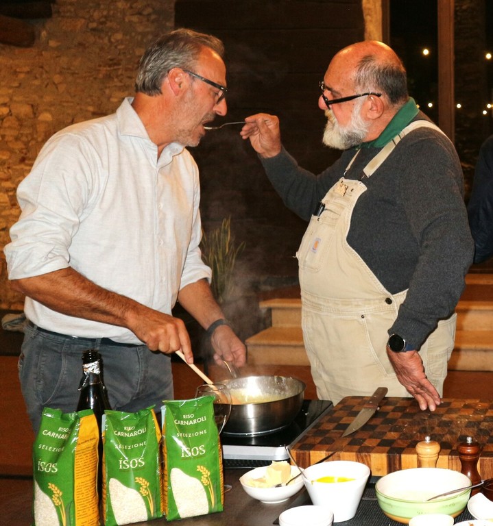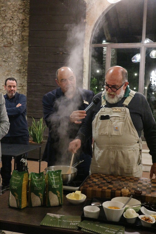 Insieme ad Andrea Bianchi, produttore del riso Carnaroli selezione Isos, ha improvvisato uno show cooking coinvolgente, preparando in sala un profumato risotto alla zucca e svelando qualche segreto della sua cucina “sincera”, fatta di gesti semplici e sapori genuini.