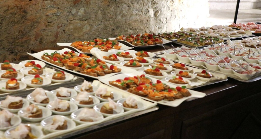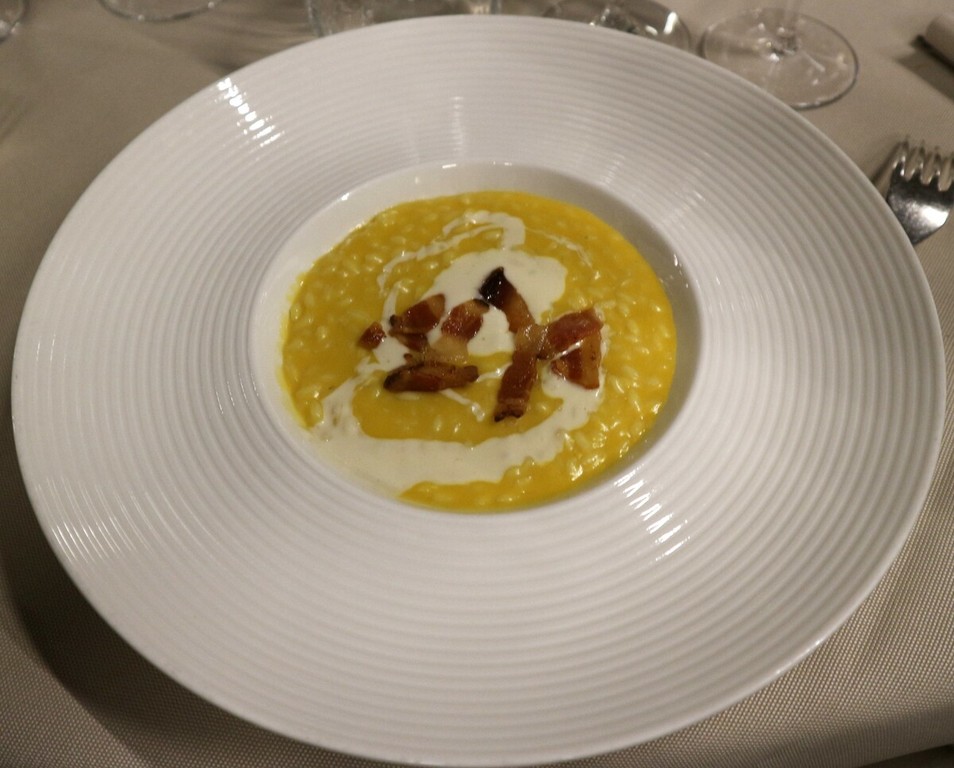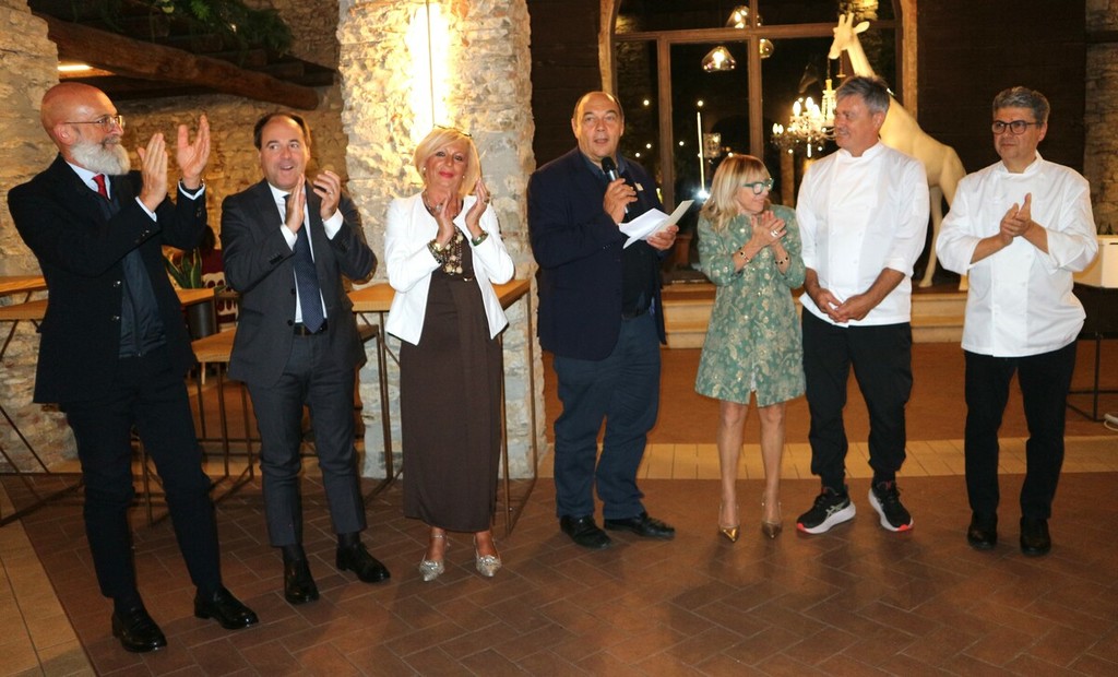 Il menù, molto apprezzato dai partecipanti, ha proposto — dopo un ricco aperitivo di finger food e stuzzichini — il risotto mantecato alla zucca con crema di formaggio Castellaccio e guanciale croccante,
