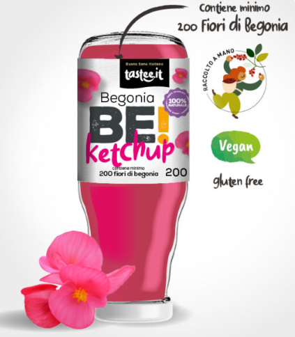 Be!Ketchup: Il rivoluzionario ketchup senza pomodoro, realizzato con più di 200 fiori di Begonia. Un condimento sano, buono e assolutamente innovativo.