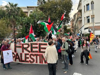 È partito alle 18 da corso Garibaldi il corteo pro Palestina che questa sera sta attraversando le vie del centro di Sanremo, passando da via Ruffini, lungo la ciclabile e fino a Pian di Nave. Alla manifestazione partecipano circa duecento persone, in un clima pacifico e molto partecipato.