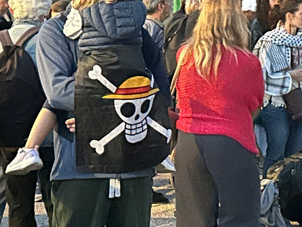 La manifestazione diieri sera a Sanremo, che ha visto scendere in piazza centinaia di persone per chiedere giustizia e diritti per il popolo palestinese, si è distinta anche per un dettaglio curioso e al tempo stesso significativo: tra le bandiere palestinesi e i cartelli contro la guerra, sono comparsi vessilli e maglie raffiguranti il celebre teschio con cappello di paglia, simbolo della serie cult giapponese One Piece. Un segno che non è passato inosservato. Già in Francia, in Asia e in altri Paesi del mondo il cosiddetto “Jolly Roger di Rufy” è stato adottato come bandiera di protesta. A Sanremo, dove il corteo è partito da corso Garibaldi per poi attraversare via Ruffini, la ciclabile e concludersi a Pian di Nave, diversi giovani hanno scelto proprio quel simbolo per esprimere ribellione contro l’ingiustizia.