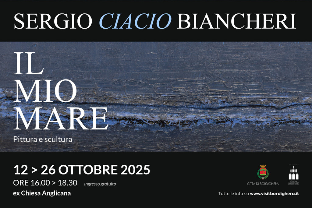 Domenica 12 ottobre alle 16 le porte dell’ex Chiesa Anglicana di Bordighera si apriranno per il vernissage di “Il mio mare”, mostra di Sergio “Ciacio” Biancheri: un percorso espositivo suggestivo e appassionante lungo oltre sessant’anni di ricerca artistica, delineato da più di sessanta quadri e sculture. Al centro le “Marine” di Biancheri, vere e proprie poesie visive fatte di colori, riflessi, sfumature