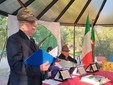 "Consegniamo una targa a tre alpini che si sono sempre dedicati, e continuano a collaborare, al sostegno del gruppo. Ne abbiamo realizzate tre: la prima va a Guido Maccario, con stima e riconoscenza, per aver guidato per quindici anni con passione, capacità e competenza la famiglia alpina ventimigliese. Gliela consegna Dario Canavese" - dice il capogruppo del “Gruppo Ten. Beppe Cumina” di Ventimiglia Sino Spanò - "Una targa in segno di riconoscenza va all'alpino Gianfranco Marini per il suo contributo, l'onore, il sacrificio, l'instancabile dedizione al servizio degli alpini di Ventimiglia e la sua esperienza storica nel gruppo Ana di Imperia. Infine, una targa va a Dario Canavese, un alpino novantenne, per la sua esperienza sempre al servizio del gruppo alpini di Ventimiglia con affetto e riconoscenza e per festeggiare il suo compleanno. Ringrazio anche le donne alpine che hanno sempre lavorato con il cuciniere nella preparazione dei piatti e delle prelibatezze".