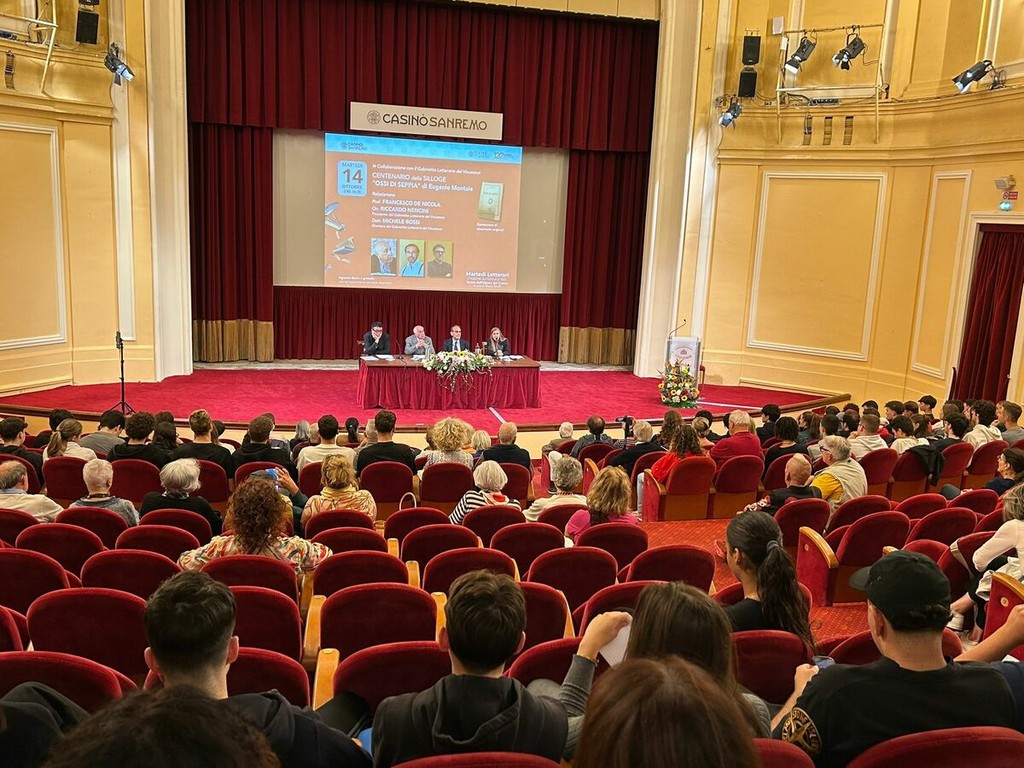 Grande partecipazione e applausi al Teatro del Casinò di Sanremo per l’omaggio ai cento anni di “Ossi di Seppia”, la raccolta poetica che segnò l’esordio di Eugenio Montale nel 1925. L’evento, parte dei Martedì Letterari, si è svolto in collaborazione con il Gabinetto Scientifico-Letterario G. P. Vieusseux di Palazzo Strozzi a Firenze e ha unito momenti di riflessione e approfondimento storico-letterario.