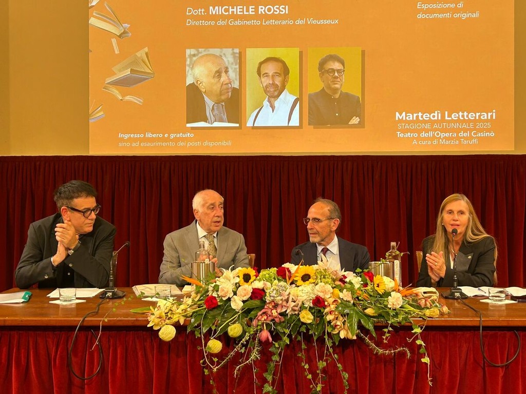 L’incontro è stato accompagnato dall’inaugurazione, nel foyer del Casinò, della mostra curata dalla dottoressa Elisa Martini, che espone libri, lettere e documenti originali legati alla silloge, provenienti dalla prestigiosa collezione del Gabinetto Vieusseux di Firenze. L’esposizione, accolta con entusiasmo dal pubblico, resterà aperta fino al 9 novembre, offrendo ai visitatori un viaggio nel mondo poetico di Montale e nella storia culturale del primo Novecento.