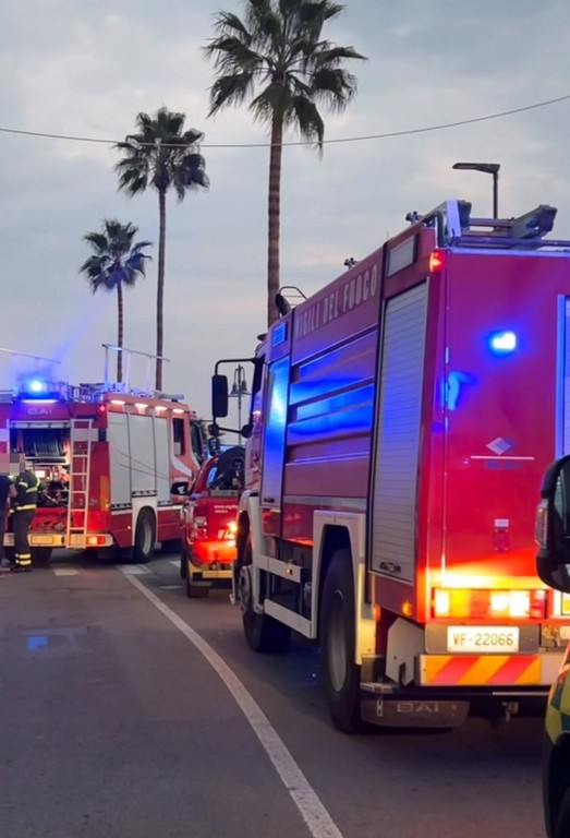 Mobilitazione di soccorsi in serata sul lungomare a Ventimiglia per un incendio divampato in un'abitazione in passeggiata Felice Cavallotti.