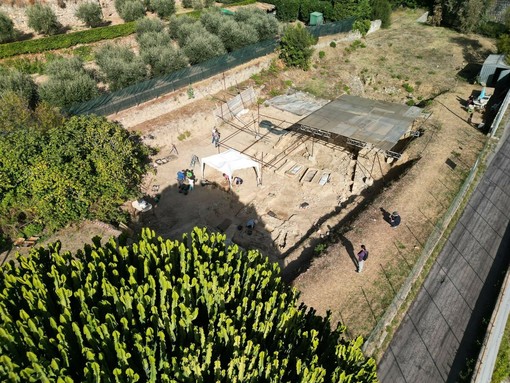 Le ricerche hanno interessano il grande cimitero tardoantico che a partire dalla seconda metà del V secolo d.C. si impostò nell’area a nord delle stesse mura, con un uso prolungato per tutto il secolo successivo, di cui sono già state individuate oltre 60 tombe di diversa tipologia, con al centro un grande settore con sarcofagi in pietra, già in parte scavato dall’antropologa imperiese Valeria Amoretti, ora funzionaria al Parco Archeologico di Pompei.