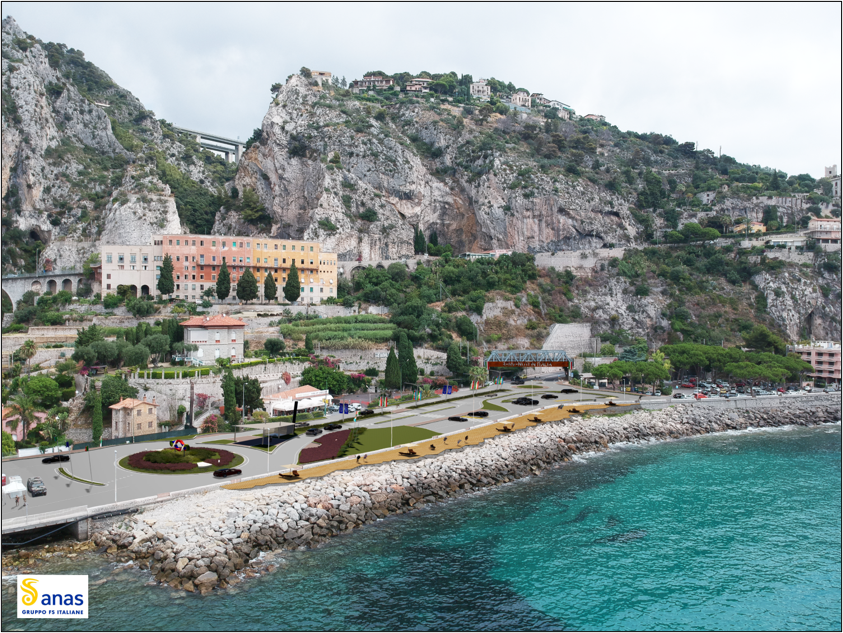- Riqualificazione della rotatoria lungo la SS1 “Balzi Rossi”, realizzata in collaborazione con il Comune di Ventimiglia e la Regione Liguria. Il progetto tiene conto degli aspetti funzionali, viabilistici e paesaggistici dell’area;