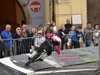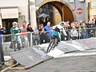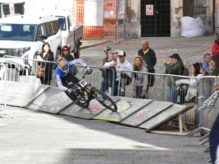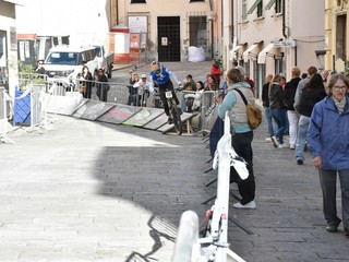 L’atmosfera è stata quella delle grandi occasioni: pubblico, curiosi affacciati dai balconi e un’energia contagiosa lungo tutto il tracciato. Il rombo delle ruote sulle pietre antiche, le frenate millimetriche e i salti spettacolari hanno reso unica la giornata, preludio della gara di domani. La macchina organizzativa ha funzionato alla perfezione: 60 collaboratori, supportati da tre ambulanze e due medici, hanno garantito sicurezza e fluidità durante le prove, che si sono svolte nelle due finestre orarie di 9.45–12.15 e 14.45–16.45, come da programma.