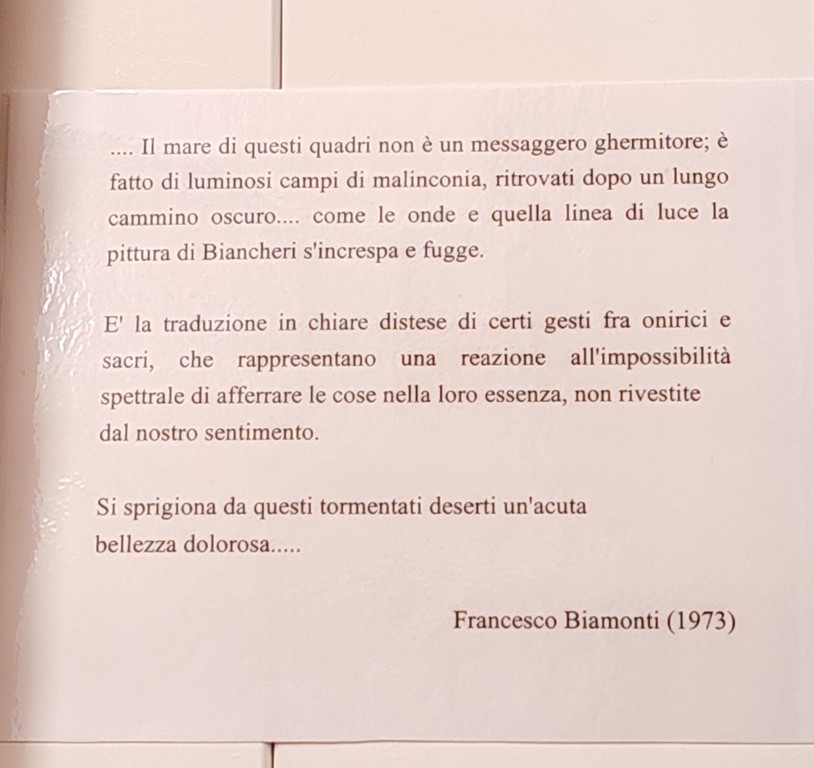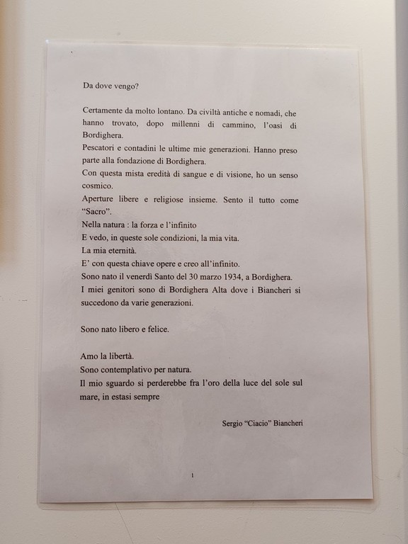 "La mostra è andata bene. Tante persone sono venute a vederla. Tutti i giorni c'è stata una buona affluenza" - fa sapere Enrico Biancheri, figlio di Sergio Biancheri - "Quando abbiamo deciso di realizzare questa mostra, abbiamo pensato all'elemento che più rappresentava nostro padre, che, nel corso della sua vita, ha spaziato nella pittura, nella scultura, nella terracotta, nell'ardesia e si è occupato anche della fusione del metallo. C'era un ampio margine di scelta ma, alla fine, abbiamo preferito il mare, perché è stata la sua più alta espressione. Era figlio di pescatori, ha vissuto il mare da vicino, andava a pescare con suo padre e tutti i suoi zii, e quindi, alla fine, abbiamo scelto come tema principale il mare. Il nome della mostra deriva, proprio, dal titolo di una poesia che aveva scritto: 'Il mio mare'".