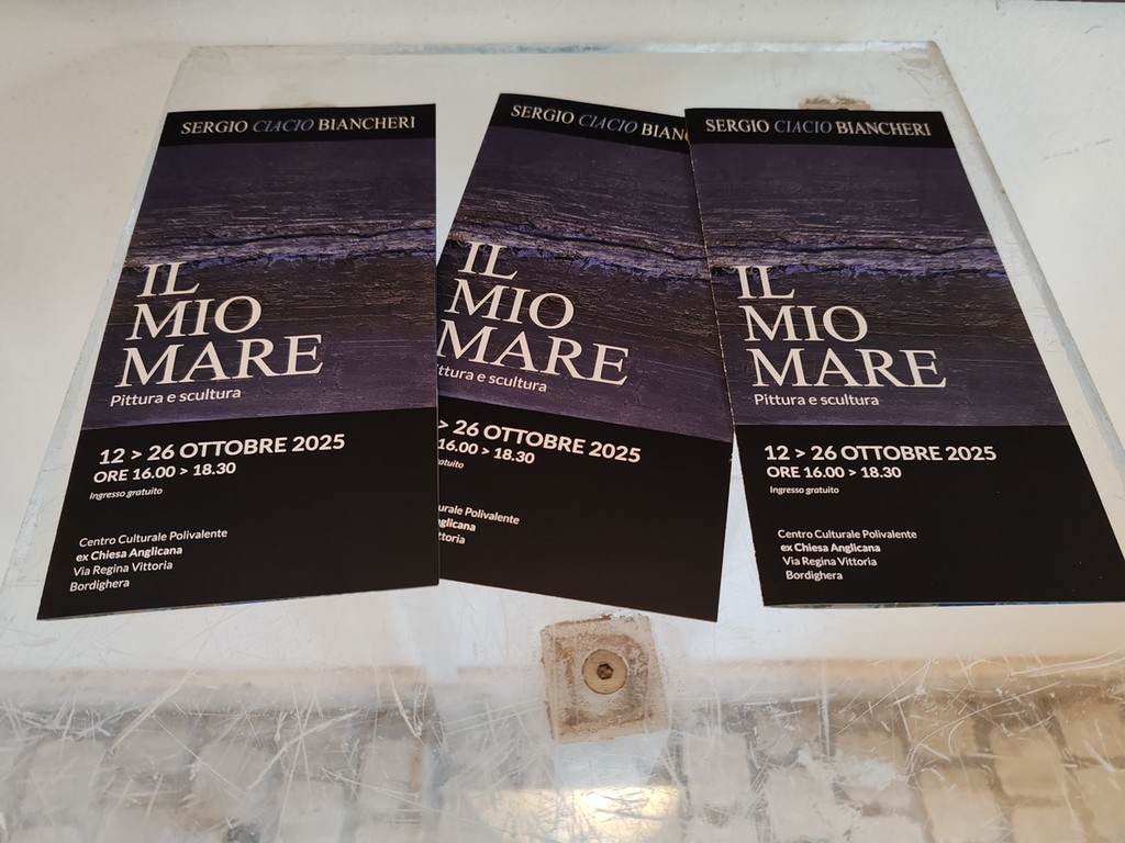 Pittura e scultura di Sergio 'Ciacio' Biancheri all'ex chiesa Anglicana a Bordighera. Si è chiusa ufficialmente ieri pomeriggio "Il mio mare", una mostra, a ingresso gratuito, che ha permesso ai tanti visitatori, cittadini e turisti, di scoprire il talento di Ciacio e ripercorrere la sua vita artistica a partire dal 1960, con un focus, in particolare, sul tema marino.