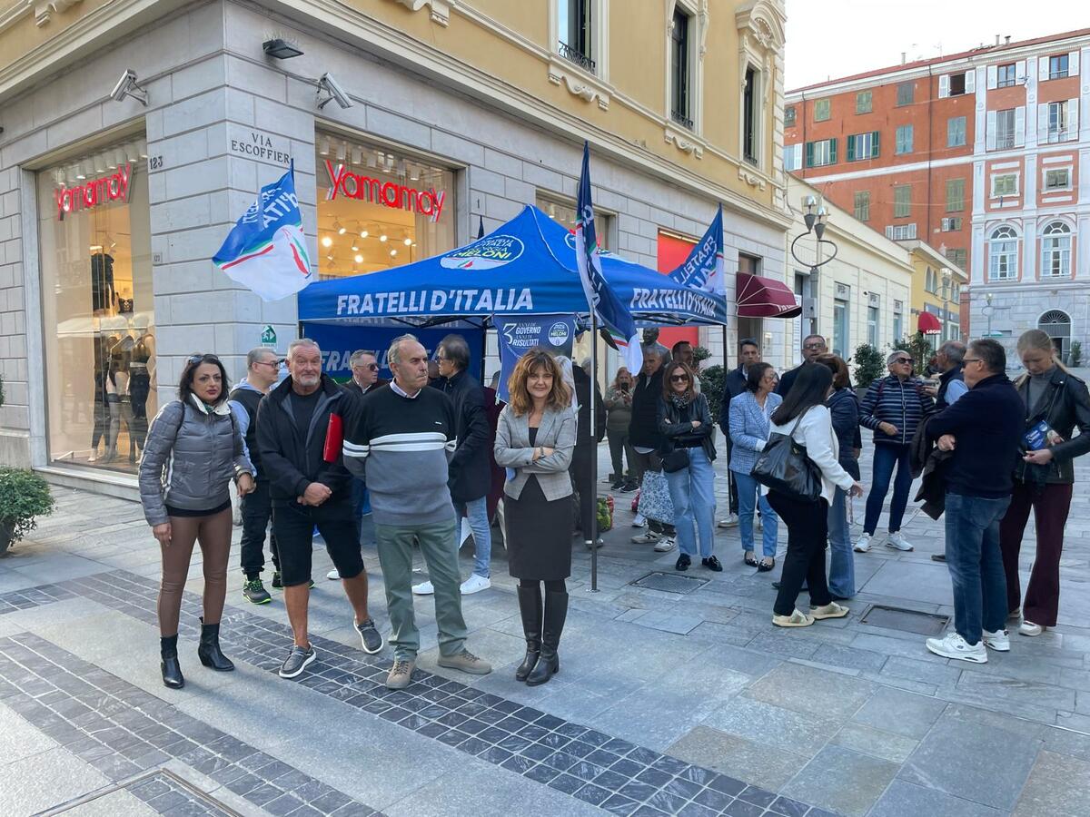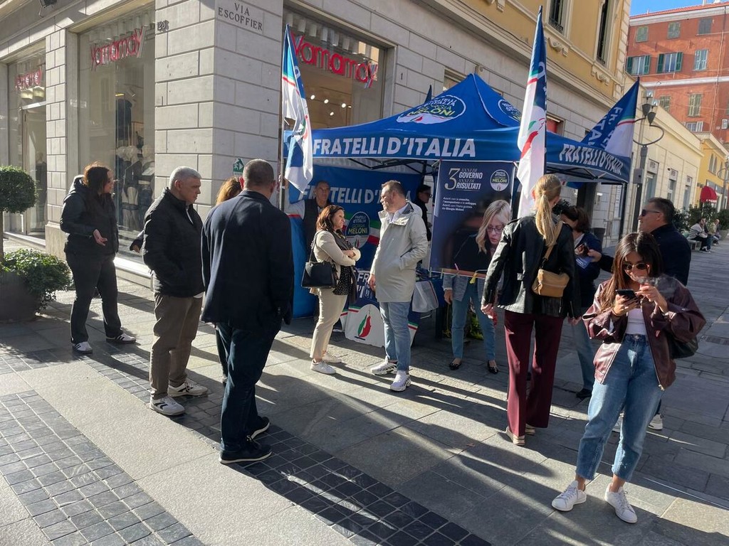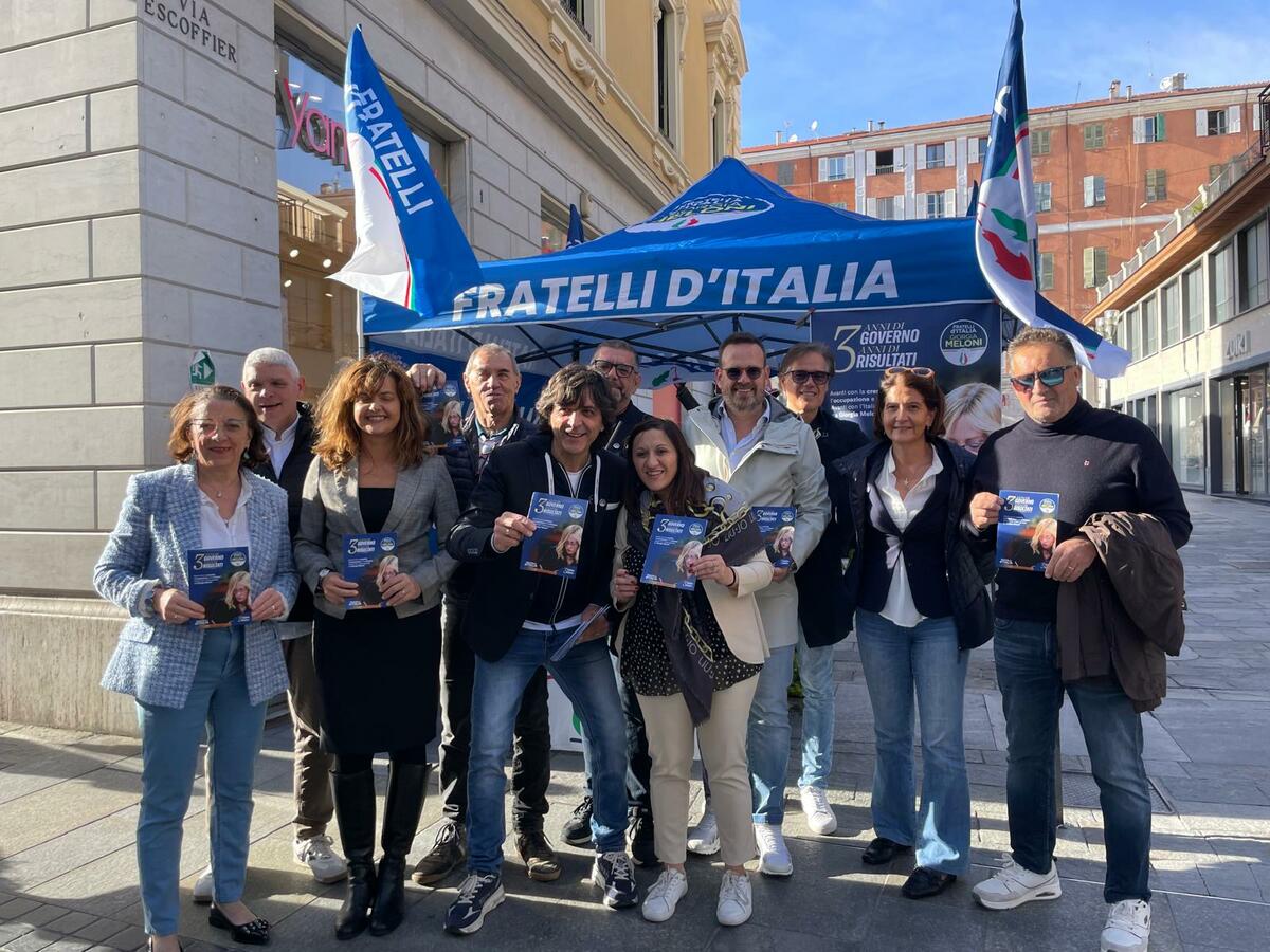 Sabato scorso il direttivo di Fratelli d’Italia Sanremo è sceso in piazza, come da tradizione, con un gazebo allestito in via Escoffier, nei pressi della statua di Mike Bongiorno, per celebrare i tre anni di governo guidato da Giorgia Meloni. "Siamo molto soddisfatti della grande partecipazione – dichiarano i dirigenti locali del partito – ma non ci sorprende: ogni volta che scendiamo in piazza registriamo un forte interesse e una crescente vicinanza dei cittadini. Fratelli d’Italia a Sanremo è in costante crescita e questa è stata una giornata particolarmente significativa".