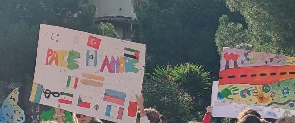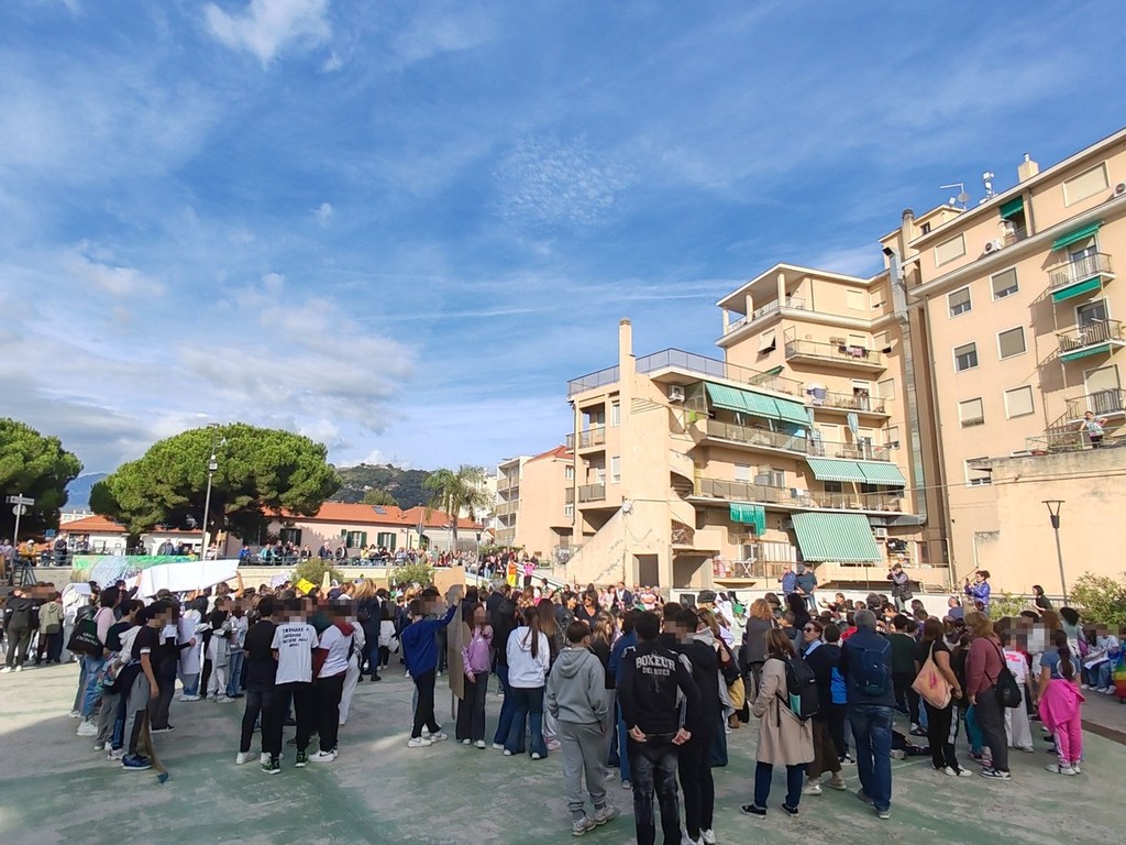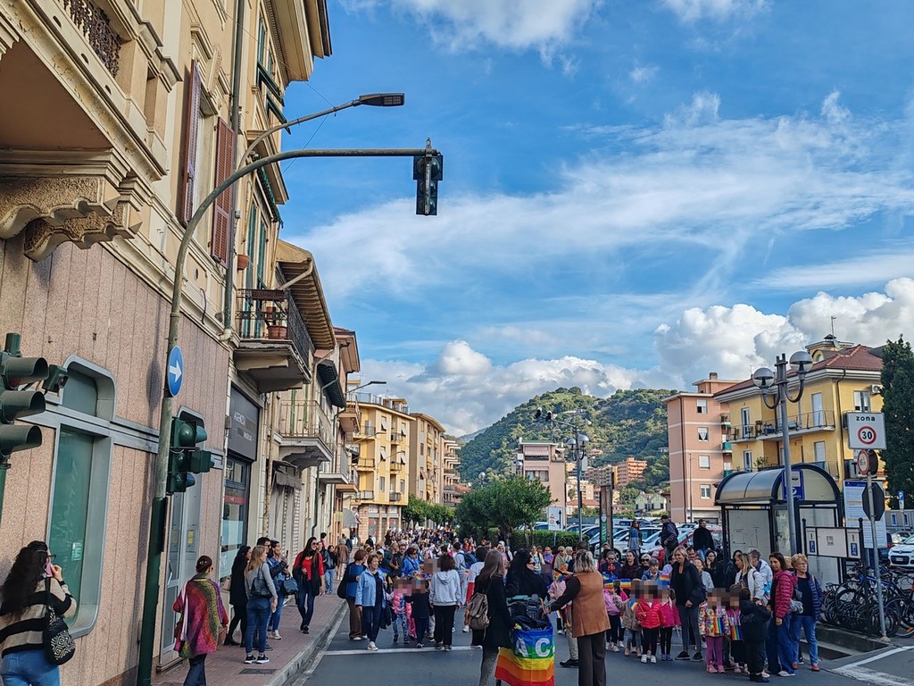 Un corteo per la pace voluto dall'istituto per sensibilizzare i giovani in un momento storico in cui l'umanità è attraversata da guerre, ingiustizie e violenza. Sul solettone sono stati, inoltre, proposti canti e due laboratori creativi per realizzare opere collettive a tema pace. "C'è un momento, nella vita di una scuola, in cui le mura dell'edificio diventano strette. Quando i banchi, le lavagne, i quaderni non bastano più a contenere quello che si vuole insegnare. Quando serve qualcosa di più grande, di più vero. Qualcosa che lasci il segno. Per seicento bambine e bambini, ragazze e ragazzi della scuola di Vallecrosia e dei plessi quel momento è arrivato oggi con la marcia della pace" - fa sapere la vicaria dell'istituto comprensivo Andrea Doria Luciana Moro - "Un momento di didattica differente, un'esperienza che diventa insegnamento vissuto in cui i ragazzi sono stati i principali attori protagonisti. La preparazione è iniziata circa tre settimane fa e si è mossa l'intera scuola. Hanno, infatti, collaborato tutti con un unico obiettivo: seminare pace! Gli insegnanti, muovendo dagli interessi dei bambini sull’argomento 'pace' hanno preparato canti, scelto letture, realizzato cartelloni, bandierine e fascette. Stamattina è stato uno stupore vedere che il corteo si stava formando non solo con la comunità scolastica ma anche con l’amministrazione, genitori, nonni ed ex colleghe ormai in pensione. La comunità intera unita, intorno alle nostre bambine e ai nostri bambini, alle ragazze e ai ragazzi, ha riempito le strade della nostra cittadina e, una volta arrivati a destinazione sul solettone, è iniziata una meravigliosa festa di canti e colori seguiti dalle letture fatte dai più grandi ai più piccoli e, infine, dai laboratori dove mani piccole e mani più grandi hanno lavorato per creare due opere collettive: una bandiera della pace gigante e un puzzle altrettanto imponente. Ogni pezzo, ogni filo, ogni colore era un contributo personale che si fondeva in qualcosa di più grande".