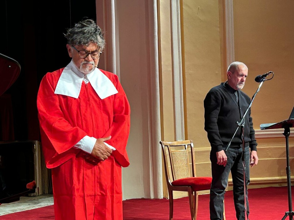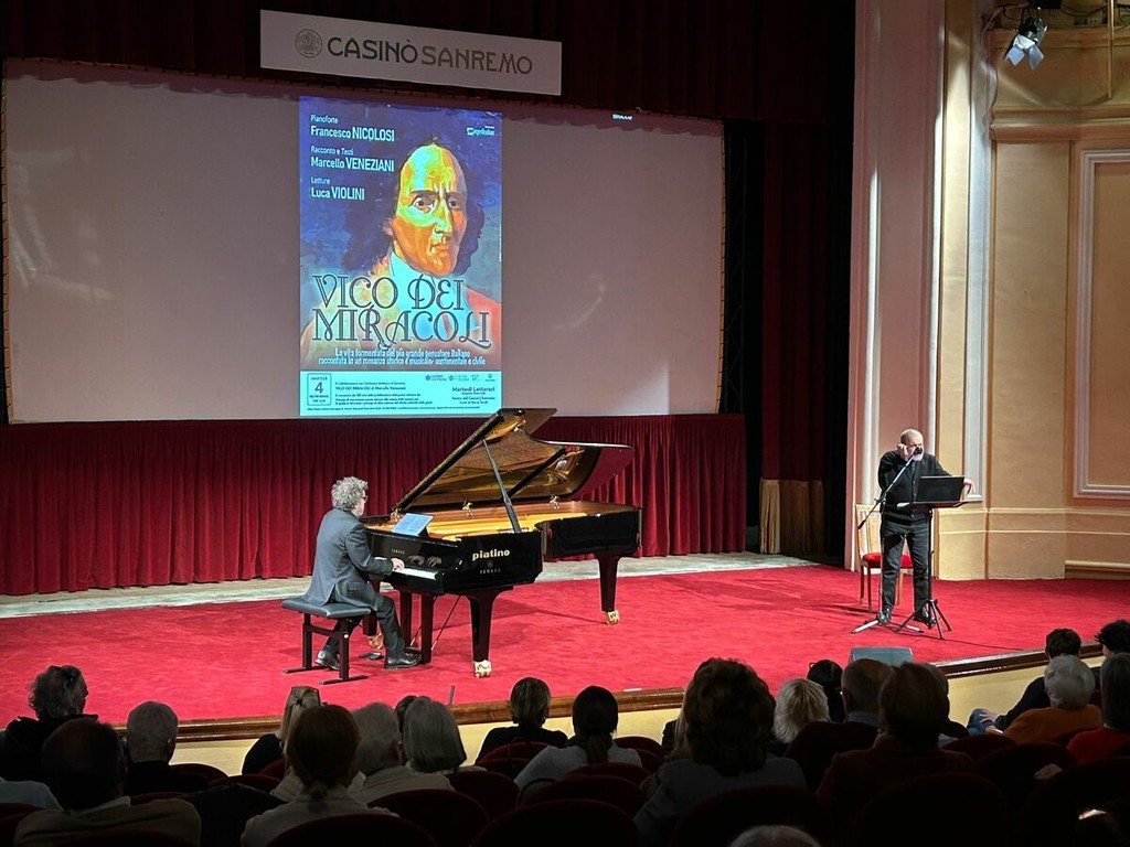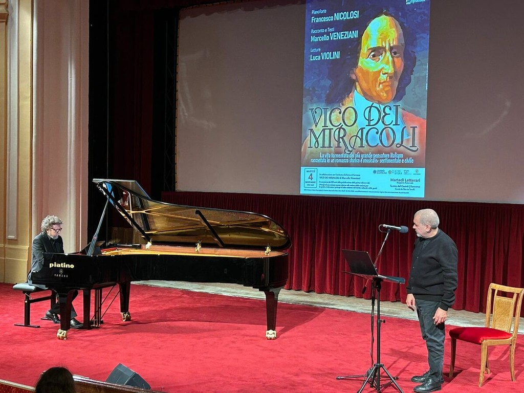 Sul palco insieme a lui il maestro Francesco Nicolosi, tra i più prestigiosi esponenti della scuola pianistica napoletana, e l’attore e doppiatore Luca Violini, che ha dato voce alle pagine più evocative della vita del filosofo napoletano attraverso brani tratti dal libro di Veneziani, pubblicato da Rizzoli nel 2023 e da quest’anno anche nella collana Bur.