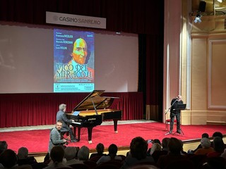 Teatro dell’Opera gremito questo pomeriggio per il ritorno di Marcello Veneziani ai Martedì Letterari del Casinò di Sanremo. Lo scrittore e saggista ha presentato “Vico dei miracoli”, evento dedicato ai 300 anni dalla pubblicazione della prima edizione della Scienza Nuova di Giambattista Vico, in collaborazione con l’Orchestra Sinfonica di Sanremo.