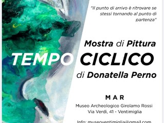 "Tempo ciclico" di Donatella Perno in mostra al Mar di Ventimiglia. Dal 22 novembre al 21 dicembre sarà, infatti, possibile scoprire e ammirare le opere di pittura realizzate dall'artista e pittrice sanremese che verranno allestite al museo archeologico Girolamo Rossi.