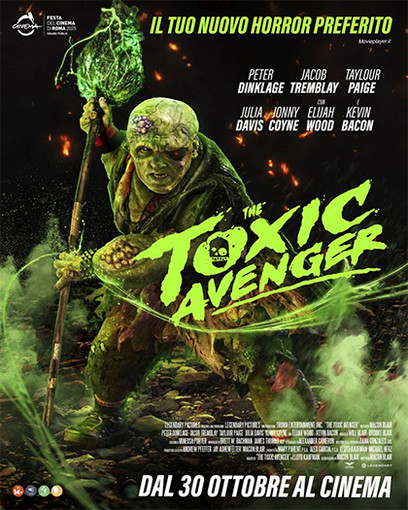 - THE TOXIC AVENGER – ore 17.00 – di Macon Blair - con Peter Dinklage, Jacob Tremblay, Taylour Paige, Julia Davis, Jonny Coyne - Azione/Commedia/Horror – “Tutto va male come al solito, a St.Troma's Village: la città è sull'orlo del fallimento, l'inquinamento avvelena gli abitanti e anche Winston Gooze non si sente tanto bene. Custode-uomo delle pulizie-tuttofare della BTH, l'azienda farmaceutica che con una mano arricchisce St.Troma's e con l'altra la infetta con i suoi liquami tossici, Winston, che ha appena perso la compagna Shelly per un cancro, sta cercando di tirare avanti tra debiti e la custodia del giovane Wade quando gli viene diagnosticato un tumore al cervello. Fatta presente la sua condizione al magnate della BTH Bob Garbinger, Winston viene da questi deriso e raggirato, portandolo ad elaborare un piano che suo malgrado lo trasformerà in qualcosa di diverso e mai visto prima...”