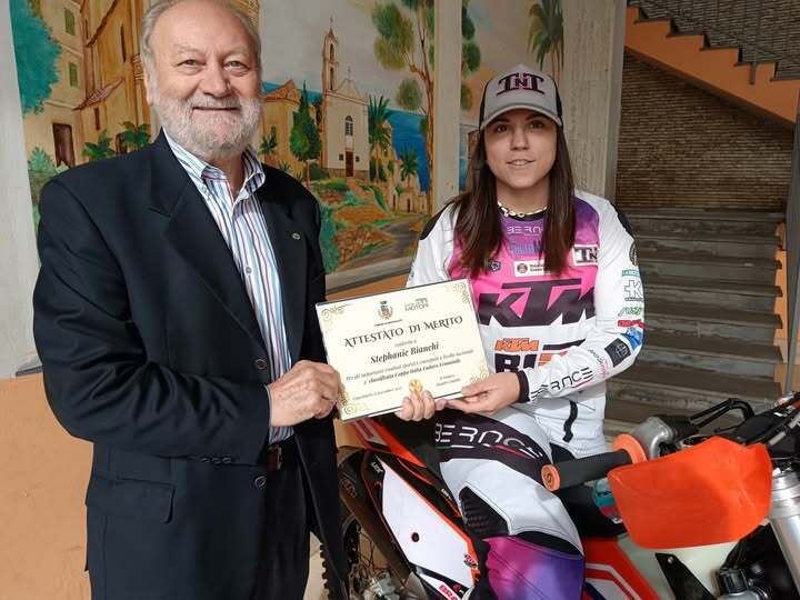 “Ringrazio la mia famiglia per il supporto, Matilde Stilo ex campionessa di motocross per il suo costante sostegno, il Moto Club Enduro di Sanremo e il team Tnt che mi ha sostenuto in questa stagione, e un grazie particolare a Giulio Borghi” ha detto Stephanie Bianchi che ha aggiunto: “Sono contenta di quello che ho fatto ma sono consapevole che ho ancora tanta strada da percorrere, sempre in sella alla mia moto e con Ospedaletti nel cuore”.