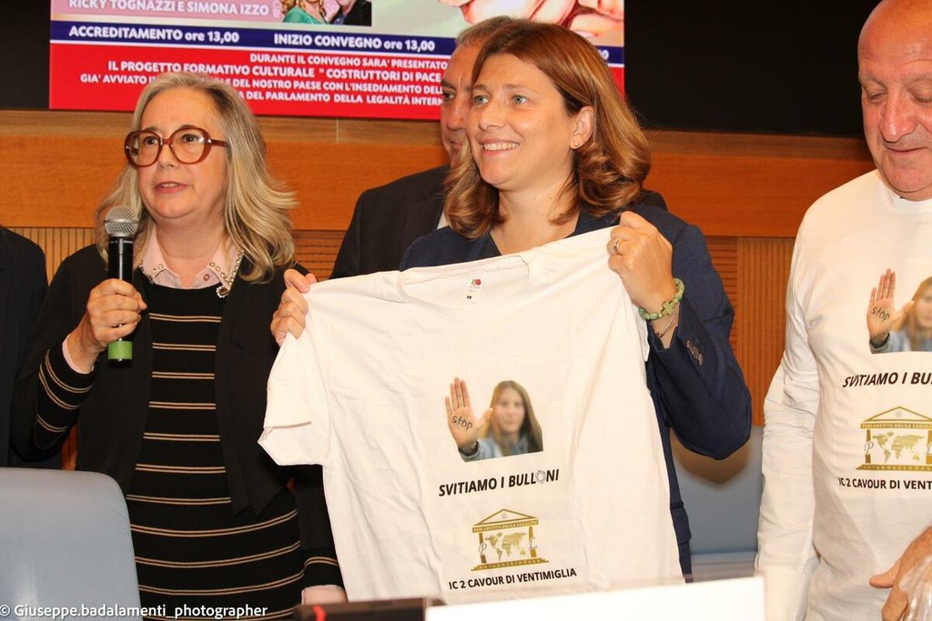 Nella suggestiva cornice della Sala dei Gruppi parlamentari di Montecitorio a Roma, una delegazione composta da 28 alunni della scuola secondaria di primo grado dei plessi di Ventimiglia Alta e Roverino ha ricevuto il titolo di “Ambasciatori di Pace e Solidarietà tra i Popoli”. Il premio è stato conferito nell’ambito del Convegno nazionale del Parlamento della Legalità Internazionale, intitolato “Dai principi costituzionali alla credibilità del servire”, presieduto dal Prof. Nicolò Mannino e dal Vicepresidente Salvatore Sardisco.