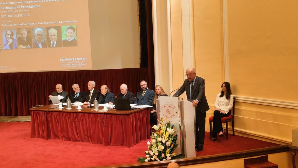 Presente anche il senatore Gianni Berrino: "Questi saggi saranno un importante lascito per il futuro, che mostreranno tra molti anni come era il mondo nel 2025 e quale visione avevamo del mondo nel 2025. Visto che siamo a Sanremo, credo anche sia giusto fare un saluto a Beppe Vessicchio, venuto a mancare poco fa".