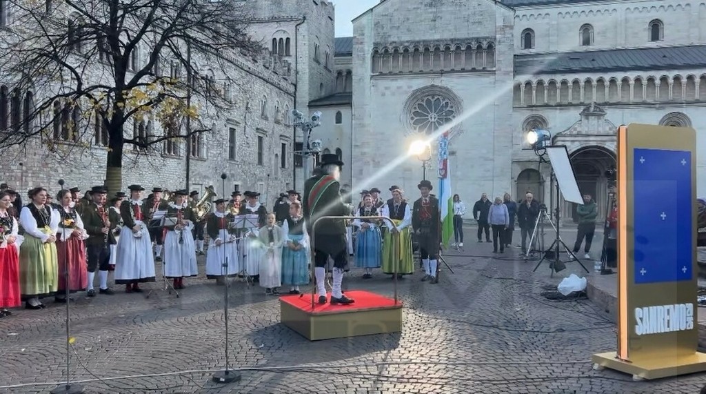 La musica del Festival di Sanremo ha risuonato nel cuore di Trento, trasformando Piazza Duomo in un palcoscenico a cielo aperto. La città è stata infatti scelta come punto di partenza per la realizzazione del nuovo spot dedicato alla 76ª edizione del Festival, che andrà in onda da metà dicembre. A dare il via alle riprese è stata la banda Musega da Poza, arrivata dalla Val di Fassa per portare un tocco di energia trentina alla storica kermesse canora. In pochi minuti, un’insolita atmosfera sanremese ha preso vita tra passanti e curiosi, coinvolti in un vero e proprio flash mob musicale.