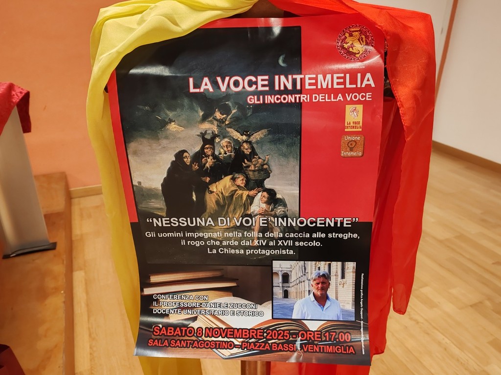 La conferenza rientrava tra gli 'Incontri della Voce' proposti su iniziativa de La Voce Intemelia e della Cumpagnia d'i Ventemigliusi. "Si tratta della terza conferenza, dopo quelle sul 'Viaggio nel mondo dei balestrieri e della peste nel 1300' e sulle 'Donne protagoniste nel Medioevo, Trotula de Ruggiero, Matilde de Canossa, Caterina da Siena e Beatrice di Tenda', con il professor Zucconi" - ricorda Dario Canavese che ha proposto l'incontro - "Questa volta tratta di un fenomeno che ha attraversato l'Europa, soprattutto continentale, per più secoli prima di spegnersi agli albori dell'Illuminismo: la caccia alle streghe".