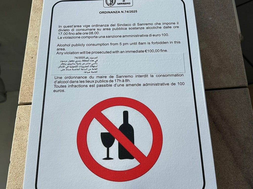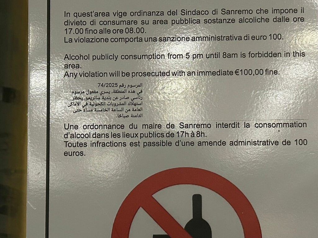 Da settimane ormai i cartelli dell’ordinanza anti-alcol sono diventati virali, fotografati e condivisi sui social, discussi nei bar e nei negozi del centro. Non solo per il contenuto – il divieto di consumare alcolici su area pubblica dalle 17 alle 8, con sanzione da 100 euro – ma per la loro caratteristica principale: il testo è riportato anche in lingua araba. Una scelta che ha fatto discutere e che, nelle intenzioni del Comune, punta a raggiungere fasce della popolazione che più faticano a comprendere le regole per motivi linguistici e culturali.