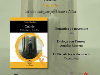Sempre nella giornata di domenica 16 novembre alle h.17,30 presso il Centro Culturale La Piccola in via Cavalieri di Malta, è in programma la presentazione dell'ultima opera letteraria dello scrittore sanremese Fulvio Rombo. Si tratta di “Oniride” (ed.Golem), terzo romanzo di una trilogia iniziata con “Ayahuasca” nel 2022 e proseguita l'anno dopo con “Profanazione”. La storia di 'Oniride' si dipana tra Sanremo, Bussana Vecchia e Ospedaletti, e le vicende narrate riguardano il complesso mondo della scuola, dei giovani e della genitorialità, spunti che saranno affrontati nel corso dell'incontro condotto dall'insegnante e scrittrice Annalisa Marrone che dialogherà con l'autore.
