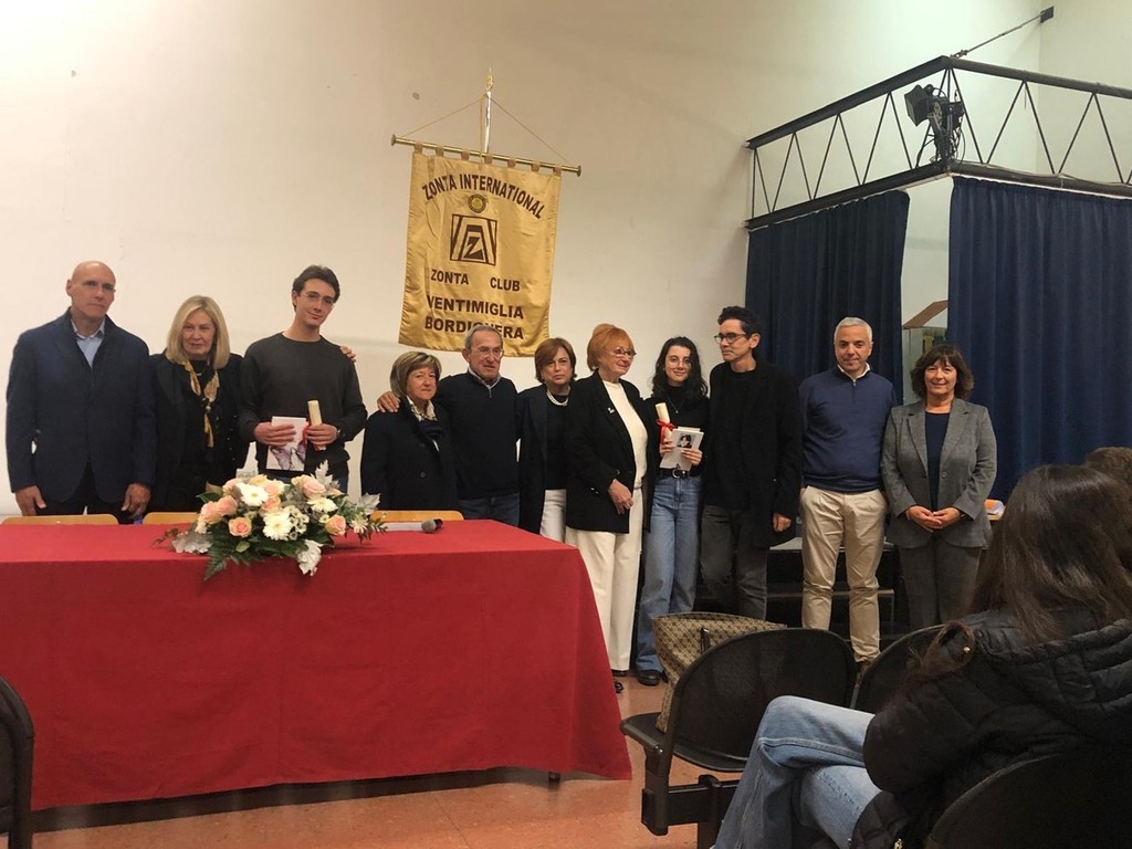Alla presenza del dirigente scolastico, dottor Giovanni Oggiana, del vice preside professor Perotto, della professoressa Alba Ambrosini, di alcuni insegnanti e di diverse classi, i signori Lia e Antonio Stellato — insieme allo Zonta Club Ventimiglia-Bordighera — hanno consegnato i riconoscimenti a due studenti distintisi per gli eccellenti risultati ottenuti al termine della quarta classe dell’anno scolastico 2024-2025.