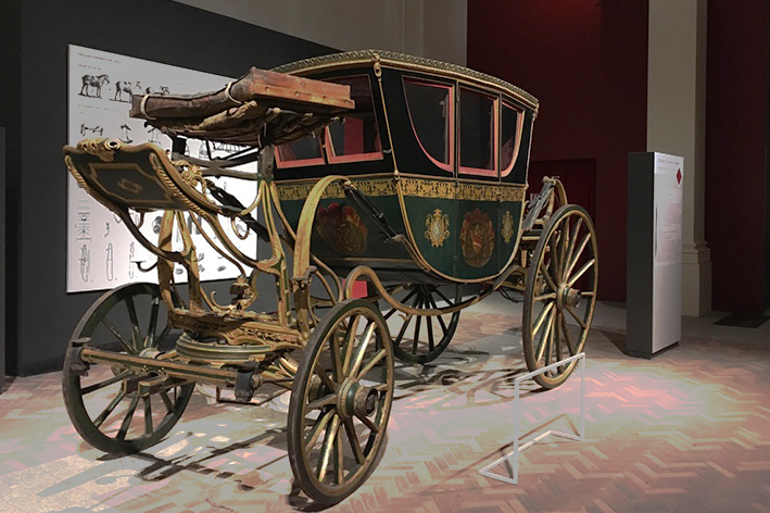 La sala delle carrozze invece, riporta in superficie il movimento. Gli interni in velluto, gli stemmi dorati, le ruote perfette: oggetti immobili che raccontano il viaggio come privilegio. Qui lo spostamento non è esplorazione ma rituale, una coreografia della distanza. Davanti a quei capolavori fermi, si intuisce quanto il potere, anche in movimento, restasse confinato dentro una propria cornice. In una sala laterale, un arazzo racconta una battuta di caccia. Figure minuscole, cavalli lanciati, alberi in fiore. Sotto, un cartello invita a non toccare. Ma la tentazione è forte: toccare per capire, per verificare quanto di quel mondo sopravvive nella materia. Tutto qui parla di un passato che resiste, anche se ha perso la sua voce. Dalla terrazza della Reggia, la vista si apre verso i giardini e oltre, verso la linea delle Alpi. È una prospettiva progettata, quasi teatrale. Juvarra la voleva così: una fuga ottica che proiettasse la grandezza della corte nella natura. Oggi, in quella stessa direzione, si estendono siepi, sentieri e fontane. Il paesaggio è cambiato, ma il ritmo è rimasto.